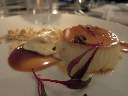 Loved that the sauce for this duck egg flan was made from Wild Turkey (whiskey). It was served with a cardamon crumble and cajeta ice cream. Cajeta is goat’s milk.