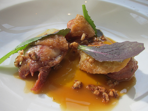 What are chicken oysters, you might ask? Apparently it’s a nub of meat near chicken thighs. When I saw Cafe Pinot was offering fried chicken oysters as part of their dineLA menu, I was intrigued but didn’t know exactly what it was. The word “oysters” made me think of some other kinds of oysters. But happily it wasn’t those er, delicate parts.