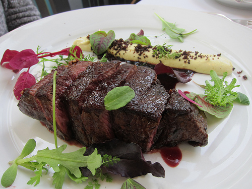 The steak looked so prominent and was quite perfect for the business lunch crowd at Cafe Pinot. It was jazzed up with candied Moroccan olives and a vadouvan goat cheese mousse. It was perfectly cooked at medium rare.