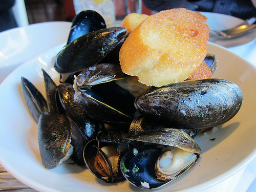 I drove the bus on this dineLA meal and picked out the steamed mussels and soft-boiled egg salad for our appetizers. The egg was perfectly done and when split, revealed a beautiful golden runny yolk. We greedily gobbled the mussels (always the best value) and even soaked some of the croutons from the salad in the mussels broth for added oomph.