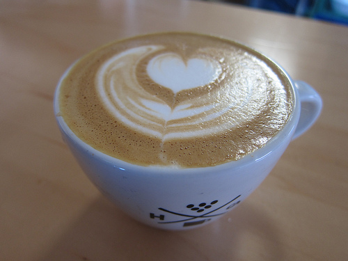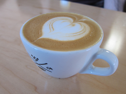 I don’t drink much coffee but I do enjoy a good cup on occasion. I’m also fascinated by coffee art. Unlike bitters designs on sours (egg white cocktails), the designs are just made from shaking milk onto the coffee foam. Apparently stencils and other tools are considered “cheating.”