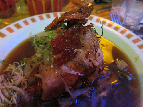 We started with the lobster ceviche with Seville orange, grilled persimmon, fresh ginger and crispy plantain chips. I used the chip to scoop up the chunks of lobster. Although I knew it was an appetizer, I knew I wanted more!