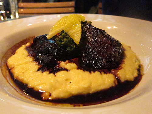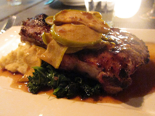 Another friend tried the balsamic-glazed short ribs and I ordered the grilled prime pork chop. I had thought about getting the kale salad but opted for the pork chop which came with kale. I liked the polenta that came with the short ribs. The short ribs were very tender.