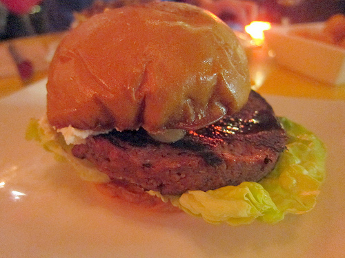 The Earth Burger features a mushroom and edamame patty with white soy aioli, truffle ricotta, cippolini onions, lettuce and slow-roasted tomatoes.  Umami sure loves its truffles. Like the poutine, I found this a bit salty but nothing a good cocktail or a glass of water wouldn’t combat. Because the patty doesn’t have the bite of beef, it does falls apart easily. You may need a knife and fork for this burger eventually.