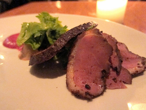 Also on the appetizers list was the duck pastrami with purple mustard, pickles and radish. It came with rye crisp and I suppose you could call it a deconstructed Reuben. Really great duck and the perfect size for one.