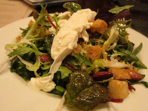 At first I wasn’t sure what the red wine risotto would be like but it turned out to be rather smooth and creamy. I liked the crispy bits of pork belly in the dish but some found it a bit salty. I made the right choice with the market salad as it came with burrata.
