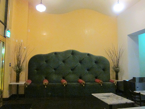 The green couch by the front door may possibly be the largest couch in Downtown L.A. I foresee a lot of photos taken here.