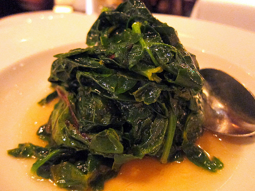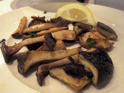 Our veggies had arrived. The mixed mushrooms and the Swiss chard with spinach caught my eye right away. We loved the mushrooms grilled in butter. The shitake mushrooms were particularly flavorful.