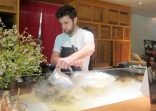 The liquid nitrogen A Bloody Good Thyme reminded me of something I had at Devon’s pop-up at Chaya Brasserie. Here’s a video I shot of Marcel whipping up the cocktail. A Bloody Good Thyme is vodka, thyme, lavender, blood orange juice and simple syrup. It was definitely had a kick and a great way to end the brunch. Marcel said he created it for an event at Sundance.
