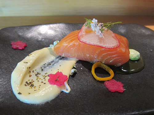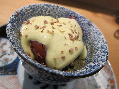 We were really excited about the tiger shrimp chawan mushi with spring peas. Chawan mushi isn’t traditionally made with cream but as Haru says, he’s French so it made the texture extremely silky. I really liked the shrimp as well.