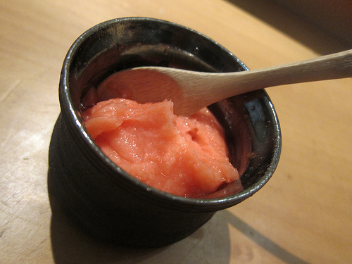 We sat around the old sushi counter of the now closed Gonpachi, watching the chefs work. Some plating was done before us and the bar was set up in the still tranquil courtyard. The duo also brought in Devon Espinosa of Pour Vous for cocktails. Not on today’s menu is his newly christened Blood of Christ. It has Sambuca! Cheers! Or the Pimm’s Cup and Resurrection also looked good.