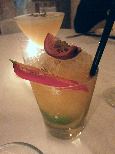 Chili Passion Caipirinha – cachaca, muddle limed, raw sugar, passion fruit puree, dash sriracha