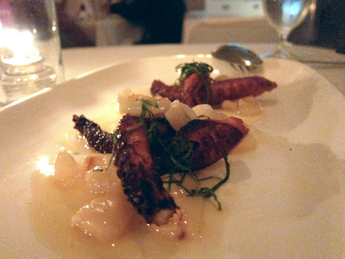 I noticed last summer it seemed like octopus was going to be the next big “meat.” It has a lot of appeal for those who only eat seafood. It can acquire that meaty texture when grilled. Asia de Cuba did a great job with this dish but what was even more impressive were the sake pickled lychees. I loved these lightly salty lychees. I may have to try my hand at pickling lychees the next time I find them fresh.