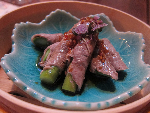 Next we tried some veggies. The asparagus wrapped with Angus New York steak is great for those keeping it low-carb. Love how asparagus has been making it to the spring menus.