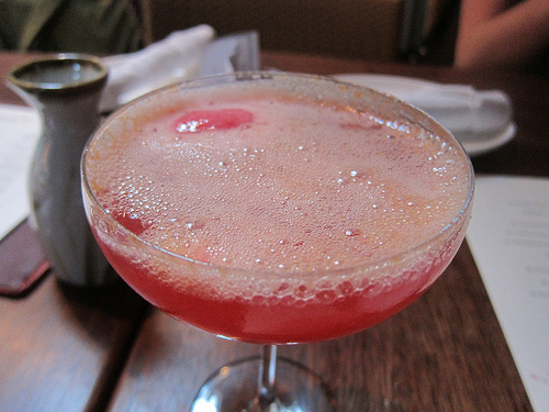 Saketini– Kaori Junmai Ginjo sake, cherry brandy, pineapple juice, grenadine float, cherry garnish