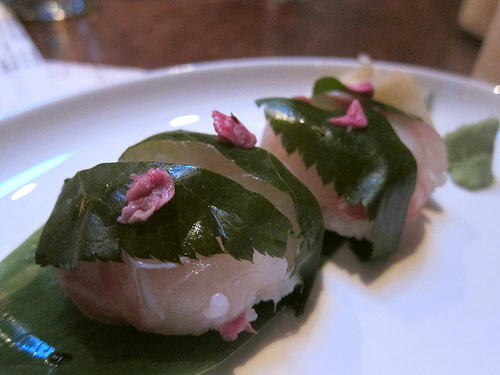 The cherry tree leaves made an appearance again with these adorable tai snapper sushi.