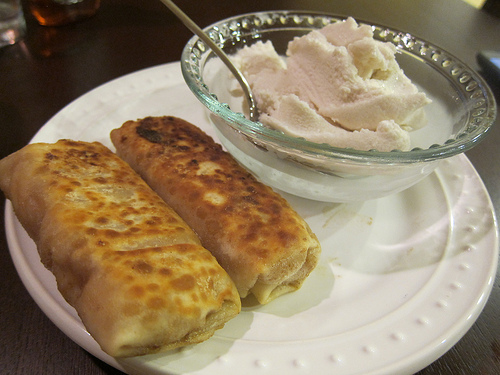 I also served a Sauternes with the banana egg rolls (the Filipino turon dessert) and coconut ice cream. My friend actually made frozen yogurt since the “ice cream” is made with Greek yogurt. Incredibly healthy and full of protein!
