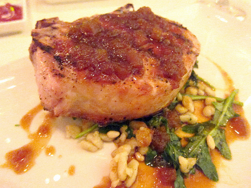 Quite a few people ordered the trout which I would have gotten but spied the pork chop came with spaetzle. Never one to pass up spaetzle, I got it as well as a side of Brussels sprouts. My chop was well cooked. I probably ate too much of it (read: all of it) but I didn’t want to take my leftovers home.