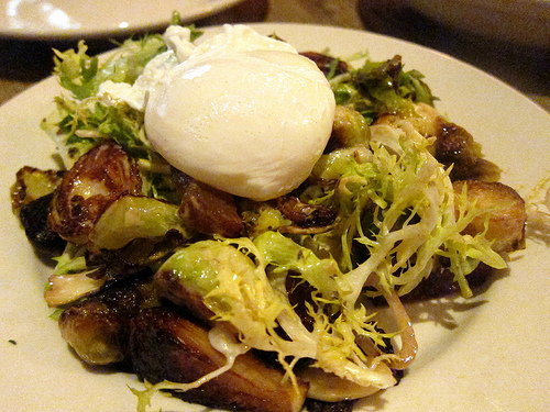 I love going to dinner and shows. The dinner options around Pantages Theatre had been fairly dismal but in the last few years, things have picked up. My Noodles Partner hadn’t gone to Delphine before so I suggested it for dinner. We shared a few things to start including the shrimp Caesar salad. I also wanted the Brussel sprouts with a poached egg but it turned out was really more of a salad.
