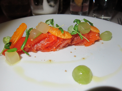 The earthiness of the gin and beet went well with the gin and citrus cured trout with cucumber, sea beans and basil.