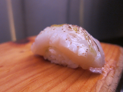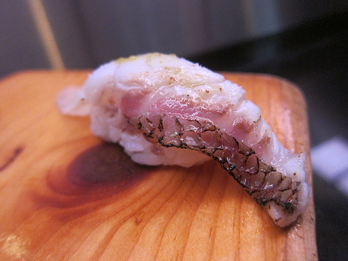 Next I had something I don’t believe I ever had before- seared halibut fin or engawa. Yes, I’ve had halibut but not the fin which is considered a delicacy as it’s fattier.
