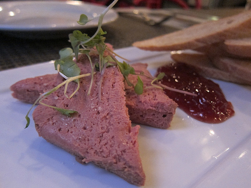 Now that California has banned foie gras, we can probably expect to see more restaurants try to entice the fatty duck liver crowd. We ordered the Faux Gras terrine. My friend liked it. I missed real foie gras.