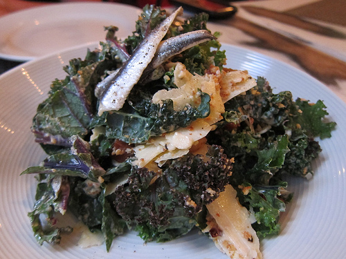 The new LA Weekly restaurant critic, Besha Rodell, didn’t like the sardines in her review. The raw sardines had been dressed with palm vinegar, lemon, and chili sea salt. I actually liked it but found it odd as the fish is actually raw — I don’t think I had sardine ceviche before and the texture took some getting used to. As it was, the dressing for the fish went fairly well with the watercress and the bitterness helped mask whatever icky feelings one might have over somewhat mushy-textured fish.