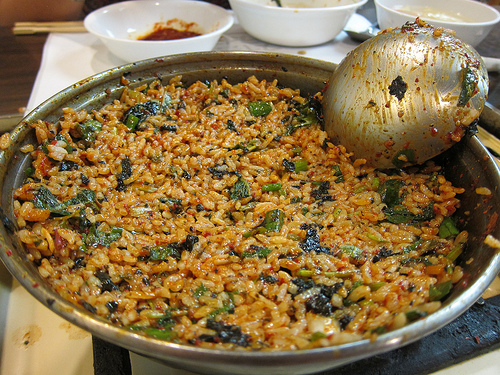 When you’re done with the stew or if you can’t eat anymore, it gets scraped out and rice is added with seaweed, sesame oil and gochujang. I love this part of the meal. I am usually too full but of course I can’t resist a bowl of fried rice.