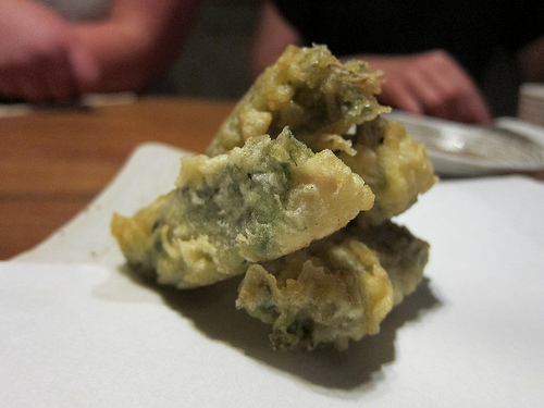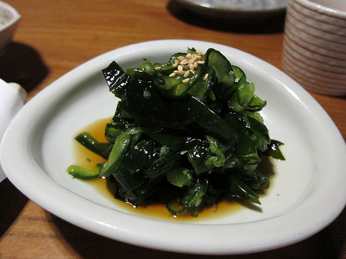 We ordered a couple of appetizers including seaweed and fried shiso-wrapped chicken which was a special that day. I really liked the chicken as there was a bit of ume (sour plum) in the middle that gave it a piquancy.
