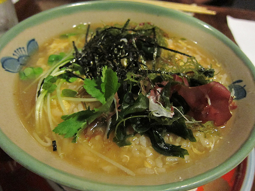 To finish our meal, I ordered the seafood zosui (porridge). I probably should have gotten the chicken as I poked around the mysterious bits of seafood. The texture sometimes of the fish and shellfish was a bit off putting at times– though I must state it didn’t taste bad. I happen to think of porridge as one of the most comforting meals and though not exciting, chicken or even just pork would have been just tine. I did love the pickles that came with the zosui.