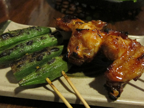 I had to have a couple of skewers. The skewer station was backed up though and these took a while to arrive. Still, it was worth it for the okra. And the chicken wings.