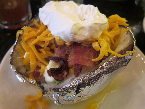 When I decided to get the fried seafood combo, I was asked what sort of potato did I want. I got the baked potato- fully loaded. Little did I know just how loaded it’d be. There were huge pieces of bacon, a mound of sour cream, thick pats of butter and a lot of cheese. Man, this could have been my only meal of the day and I would have been happy.