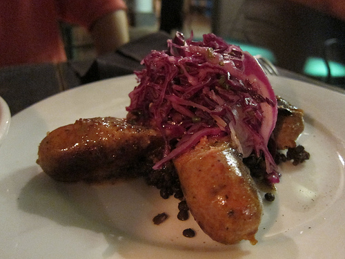 To start, we got the Southern antipasti (pickles) plate and garlic sausage. Actually, the sausage is considered an entree but I figured it’s a good starter as any. It was juicy and I always like a good kraut.