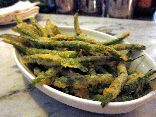 We got the green bean tempura to snack on while we waited for our food. The bar menu was pretty incredible. There were 8 substantial choices from salmon to mussels to charcuterie to even roast chicken which our bartender insisted we had to get.