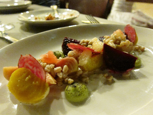 For her meal, she had the beet salad (I know, I’m the bon vivant, not her). I call that salad a salad…not a meal. It was beautifully plated and as expected, she polished it.