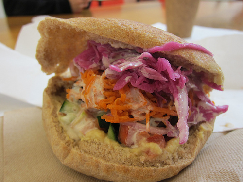 After I surveyed Nick’s pita, I was slightly glad I didn’t get it. I hate carrots. Really, an atrocious veggie.