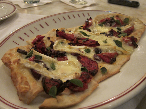 The grilled flatbread featuring tomatoes, olives and of course cheese. In this case it was camembert. My friend said he used to get it without olives because he didn’t like them but once they accidentally sent it out with the olives and he tried it. He doesn’t try to to change it anymore saying the chef knows what’s up.