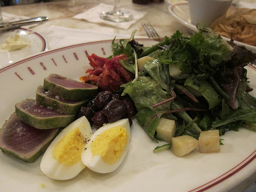 When I first got my salad, I wondered why the edges of my seared tuna were green. Our bartender couldn’t quite remember all the ingredients for the herbs rub and went to check. It turns out it was actually very simple with olive oil, salt, pepper and finely minced parsley. Once you get past the color, the tuna worked quite well in this light yet hearty salad. It was just what I wanted.