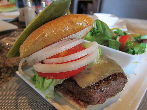 TreasureMA got the works burger with bacon but I stuck to a regular burger. Oh man! It came with the most ginormous pickle! Loved that!