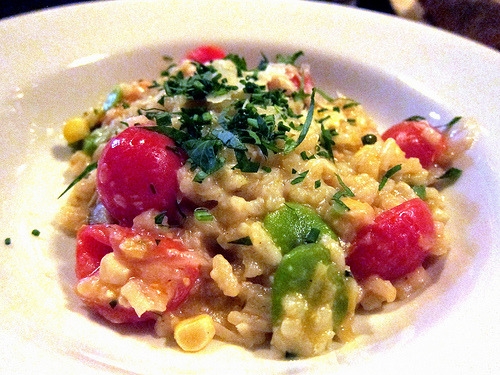 I did look at the food menu and thought the corn risotto looked good. He agreed it was one of RendezVous’s best dishes. It was early October so it was good to still get the last of summer’s bounty. The corn and tomatoes were sweet. And I liked the addition of the fava beans to bring us into the current season. RendezVous tries to grow most of its herbs and you can taste the difference with the few snippets scattered across the risotto.