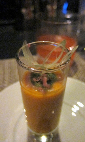 The restaurant was lovely to send out an amuse bouche. It was a tasty gazpacho.