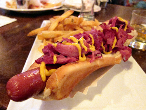 In the end, I did get the Brooklyn dog, which is a foot-long hot dog piled high with pastrami. As you can imagine, there were some jokes (and photos) but we’ll leave that to your imagination. The dog had a great snap to it which is always a good thing.
