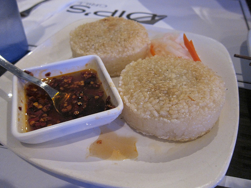 Next were the rice patties. They reminded me a bit of the Japanese onigiri but filled with warm fillings. To be honest, I don’t think I’ve had anything quite like this. The rice patties were stuffed with ground pork, wood ear mushroom, shrimp and onions. They weren’t greasy to the touch and we did like them but after a while, we found them a bit dry. I guess you can’t have it both ways. But the sauce came to the rescue and all was well.