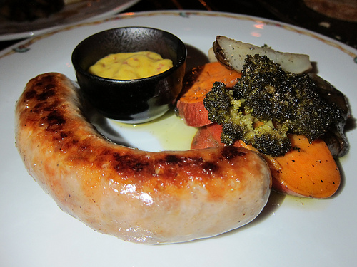 I was recently invited to sausage heaven, Gorge on Sunset. Everyone was talking about the housemade sausages which I found spinning in the old fashioned pie display by the front door. It was a meat eater’s dream come true.