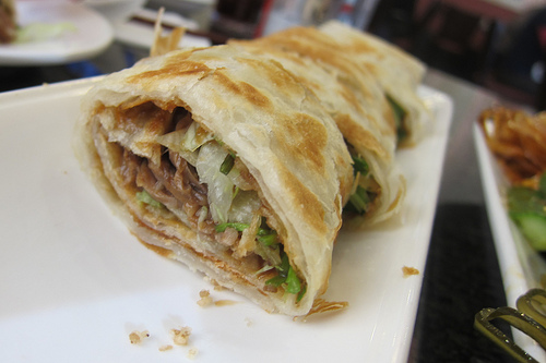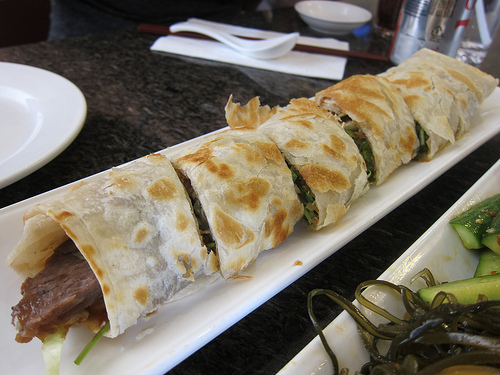 Fortune’s beef roll was beautiful. Again, it was nicely plated on a long dish which meant the beef roll which usually comes sliced and stacked in two stacks made an impression as one long roll. I found the pancake or roll part to be fine but it was the beef that sold me. It was tender and flavorful.
