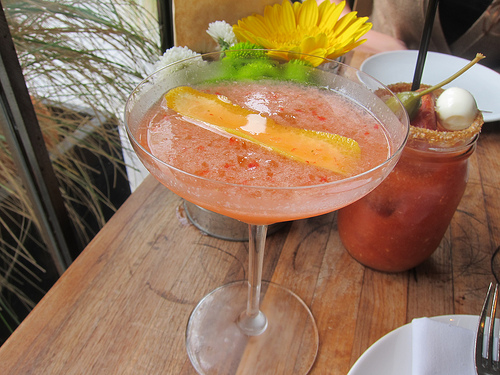 After the first LA Fried Chicken Festival, I really was jonesing to go to MB Post to have more of the delicious fried chicken. It took a while to get it together but I finally made it over to Manhattan Beach to get my chicken on. What’s brunch without some morning libations? We started with some delicious cocktails.