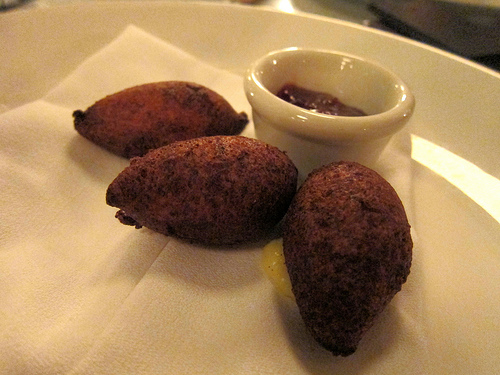 One of the popular bar menu items are the latkes with salmon caviar. It’s probably not very kosher but that dab of creme fraiche ties in the briny roe and crisp-creamy potatoes. I know people hate describing latkes as hasbrown-like but these were exactly that.