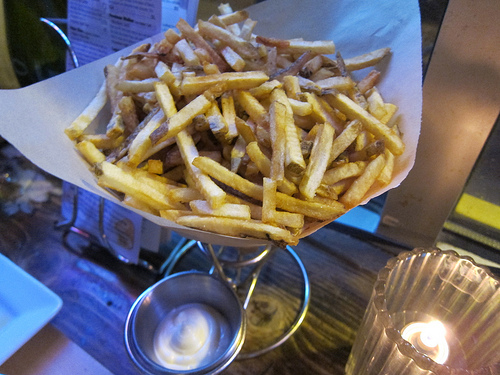 The Belgian-style fries were crispy and came with aioli to dip. I opted to dip the fries in the broths.