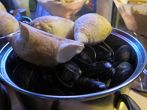 See that pot of mussels? I swore it had at least 40 mussels in it plus we had another pot of ’em.