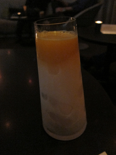 My friend got the Persimmon drink. I think we again thought she’d get something a bit more..showy. We kept seeing drinks enclosed in clear bags going by. I joked later it’d be funny if the wait staff wore space outfits but I suppose that’s just on TV.